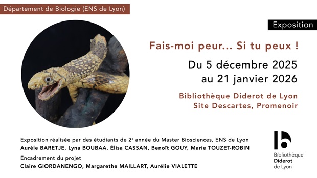Au travers de cette mini-exposition, réalisée par des étudiants de seconde année du Master Biosciences, vous découvrirez des objets biologiques, issus des collections du Département de Biologie et des ouvrages du fonds ancien de la Bibliothèque Diderot de Lyon… qui vous feront peut-être frissonner !