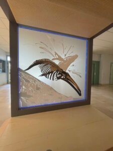 À l’intérieur de la Cabane à histoires, au sein du bâtiment Astrée du campus LyonTech-La Doua, une fresque représentant un squelette de rorqual commun boréal. ©  Margaux Michel