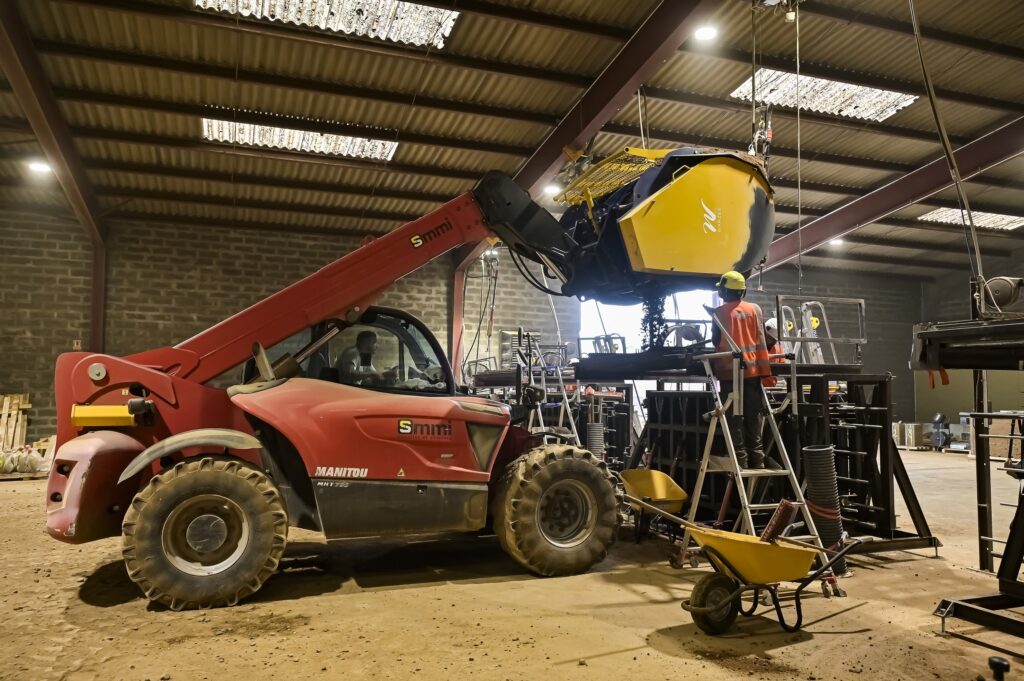 Une fois terminés, les blocs sont stockés, avant d’être acheminés sur le site lyonnais. L’élévation des murs a débuté fin septembre et devrait se terminer à l’été 2026. « C’est la première fois que je vois un chantier avec autant de suivis et de contrôles, rapporte Antoine Gouachon. Cela participe à la recherche, à la connaissance de ce matériau. Ce chantier peut aussi avoir une portée politique, pour convaincre de l’intérêt de cette technique et pour donner envie de réaliser de nouveaux projets. »
